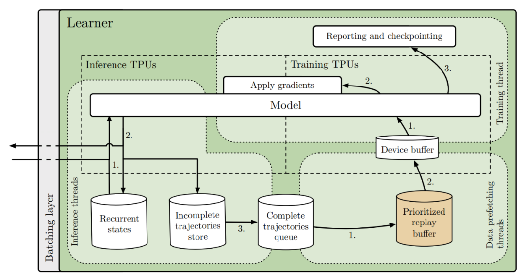 图 17. SEED 中详细的 learner 架构(可选择 replay buffer)