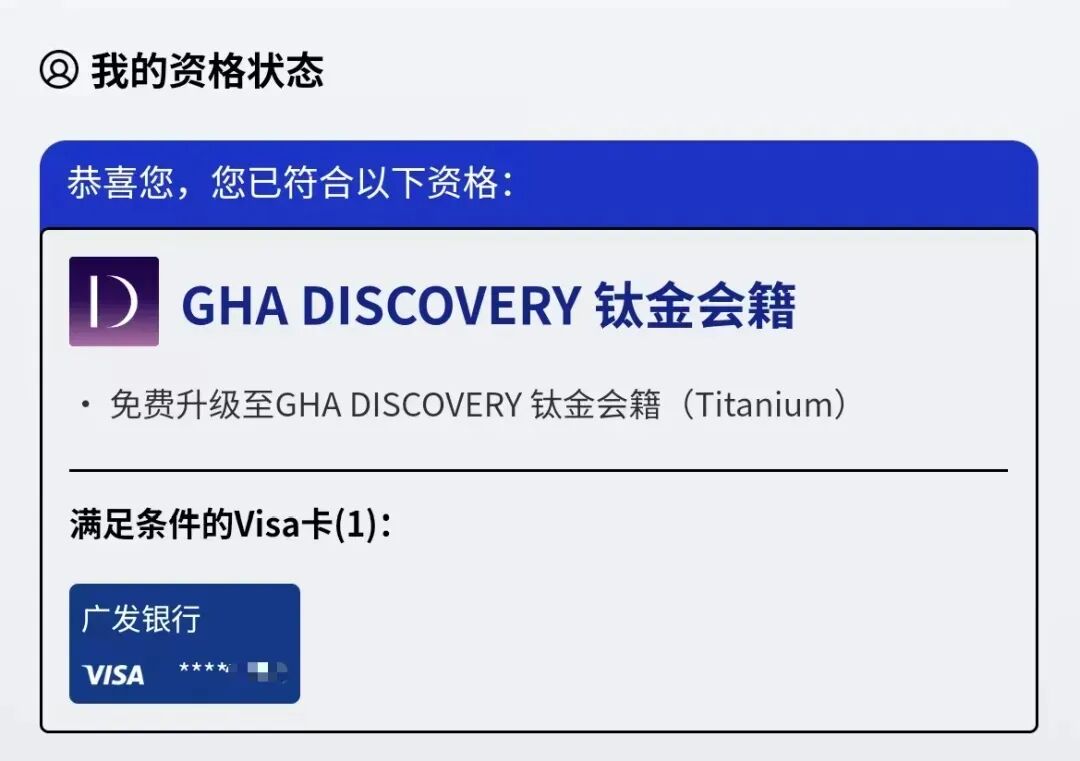 上周末,Visa官方上线Visa信用卡匹配GHA酒店联盟会籍的活动,其中Visa无限卡可匹配GHA的顶级钛金卡会籍。帅帅也有发文介绍: