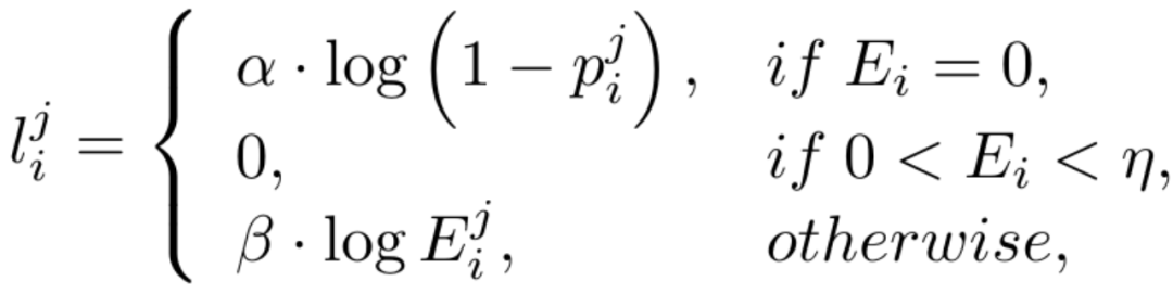 在优化过程中忽略模糊的低置信度的像素可以避免网络混乱,使训练过程更稳定的收敛,并提高模型的表现。然而,将二元交叉熵损失直接应用于在数值和空间上均未对齐的隐空间中是几乎不可能的。尤其是,不确定性感知的交叉熵损失中利用阈值