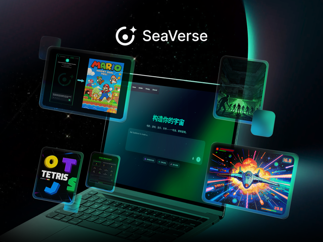 SeaVerse 是一个由 AI Agent 驱动的创意社区,只需简单一句话,它就能生成图像、视频、音乐、游戏、APP 等。