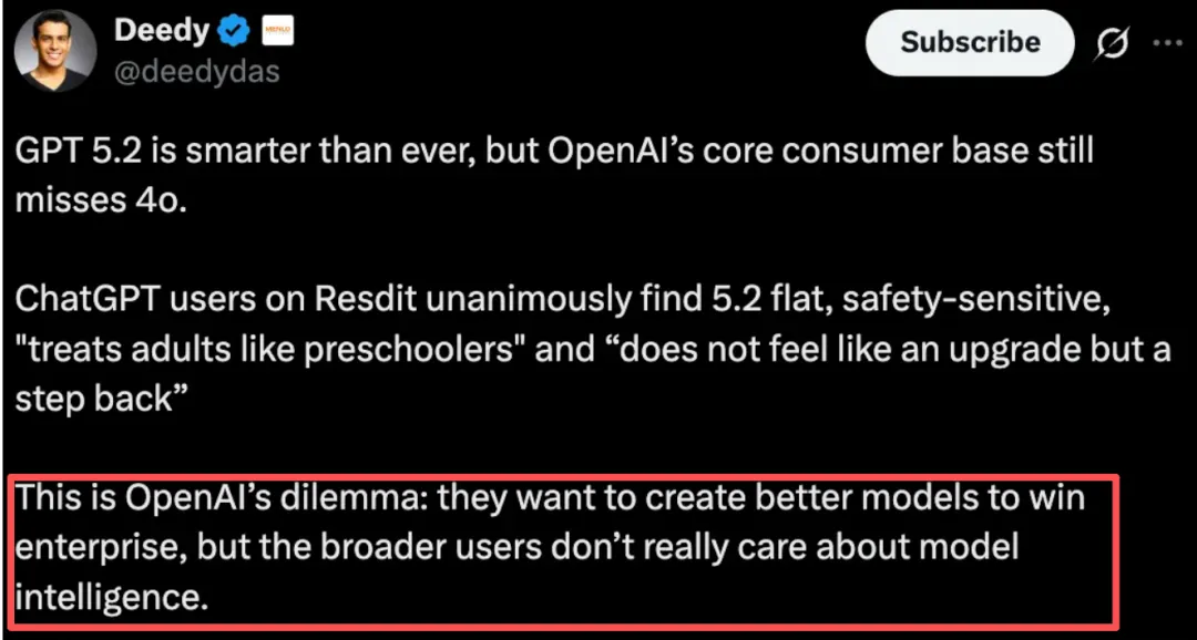 然而,市场给出一个反直觉的反馈:用户侧出现了「智能过剩」。