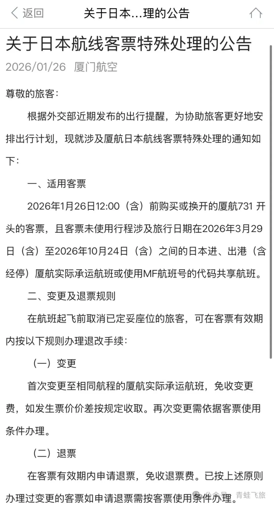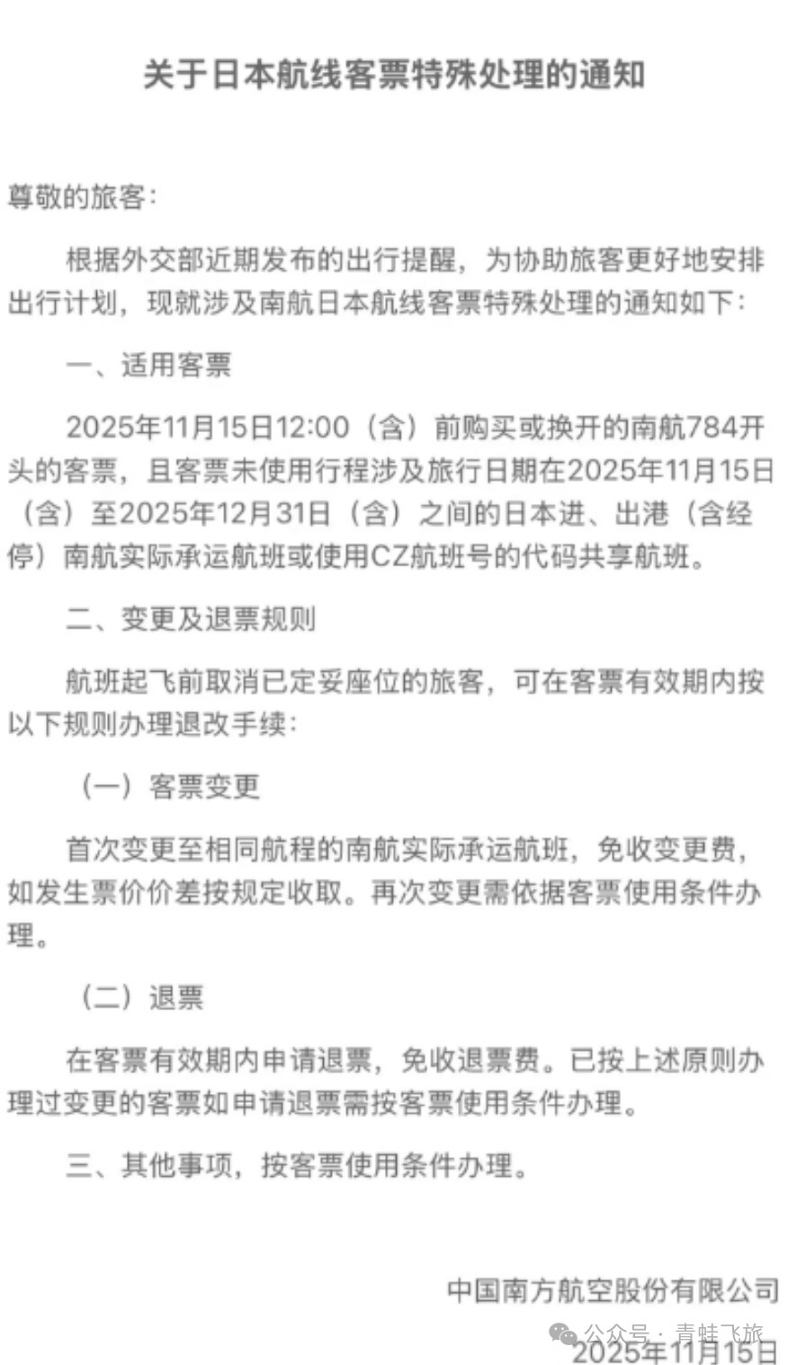 厦航刚刚发布公告,机票退改延期涉及的行程日期改到2026年10月24日,看了赴日旅游的影响短期内不会结束了。