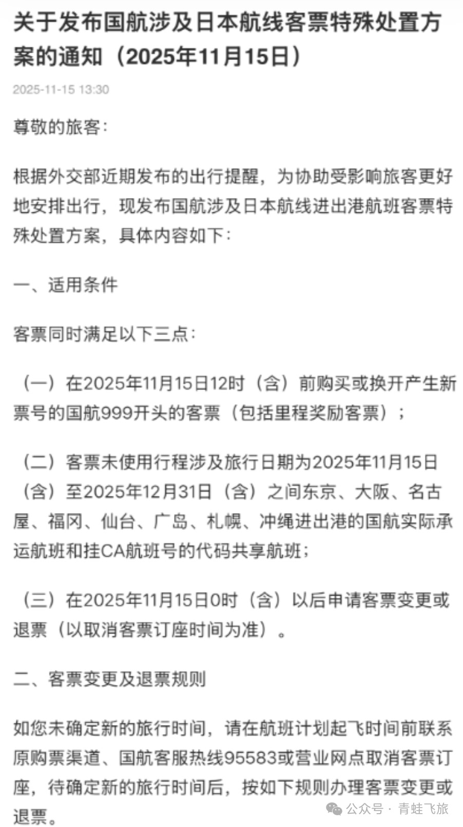 国航东航南航日本客票可以免费退改