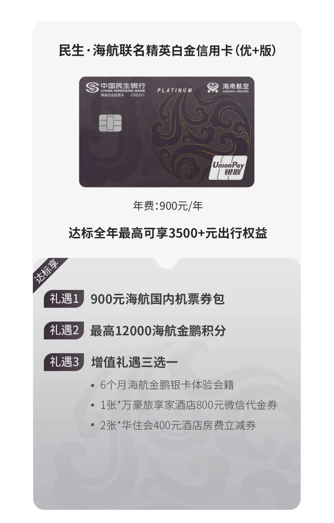 民生海航联名卡,航司银卡、里程、酒店券一网打尽!刚需海航银卡可入,酒店常旅客建议三思。