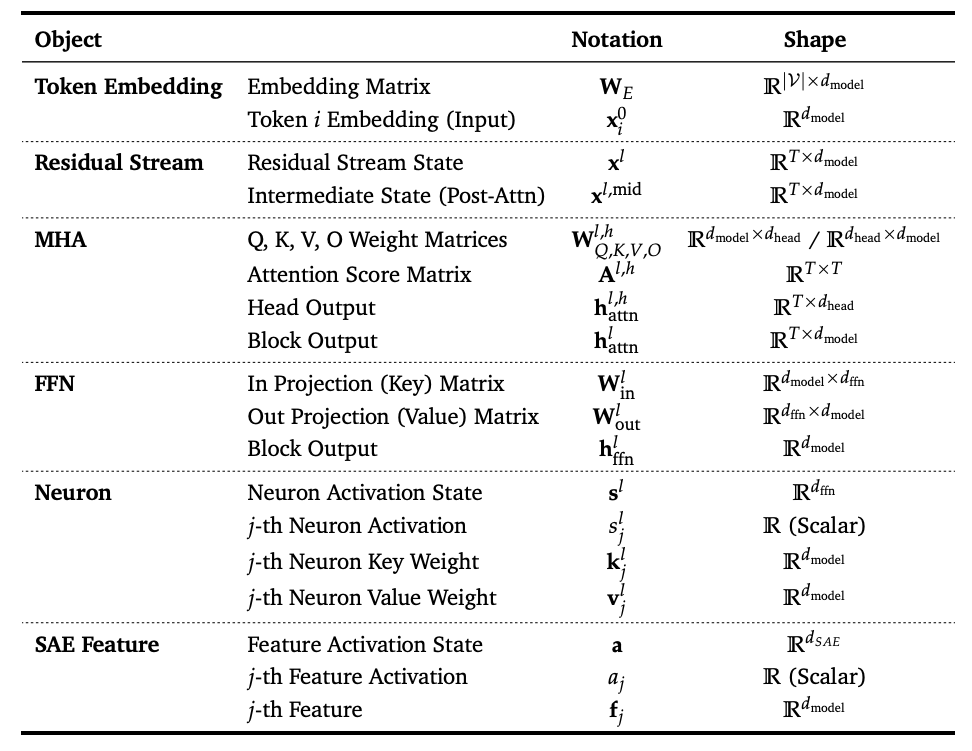 微观层面:从传统的神经元(Neuron) 到近年来广泛使用的稀疏自编码器特征(SAE Feature)。