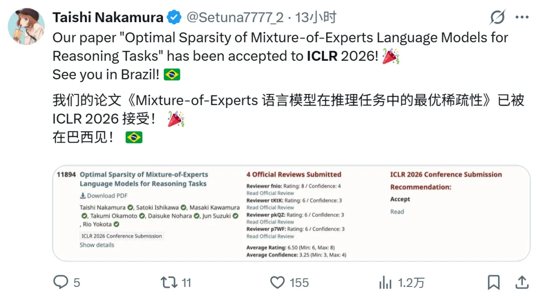 昨晚深夜,ICLR 2026 官方正式向投稿者发送了今年的论文接收结果通知。