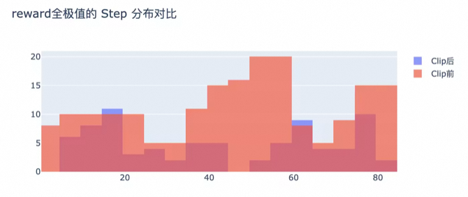 我们快速验证了80steps,发现reward全极值的情况大幅度下降(横坐标是step,纵坐标是reward为-1的个数)。