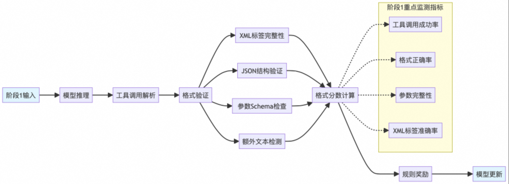 方法: 我们编写了一系列严格的规则,对模型生成的工具调用语法、参数格式进行校验。例如,如果模型幻觉出