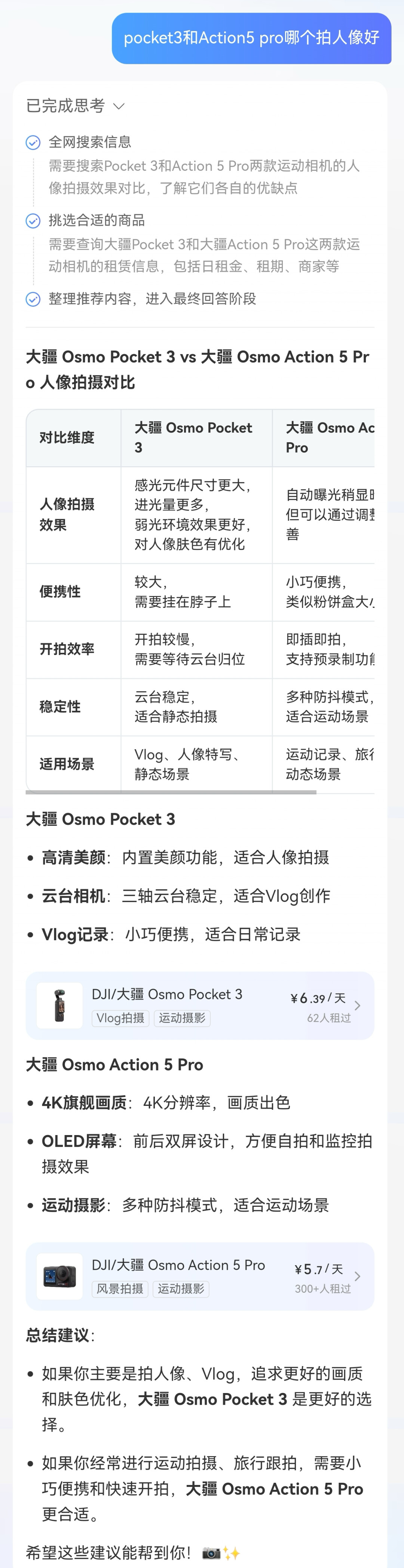 用户:我想租个相机去西藏旅游,要轻便又能拍星空