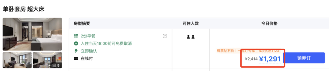 拍3份,用1998-200的券,券后210元/晚,约为日历房价5折,白菜价!