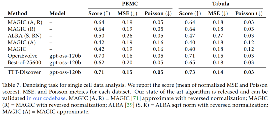 结果显示,该方法在多种任务上取得了好成绩,包括击败了 DeepMind 的 AlphaEvolve;数学领域 在 Erdős 最小重叠问题上取得了新突破;在 GPUMode 竞赛中,开发出了比人类最佳内核快两倍的全新 A100 GPU 内核;在 AtCoder 测试中超越了最佳 AI 代码和人类代码;在单细胞分析的去噪任务中取得最好成绩……