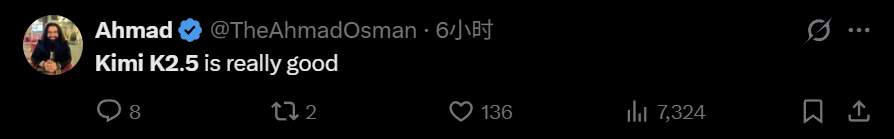 有了两个月前 K2 Thinking 的热度打底,这回 K2.5 的发布可谓热闹空前。在社交网络上,人们纷纷试用新模型并分享效果。