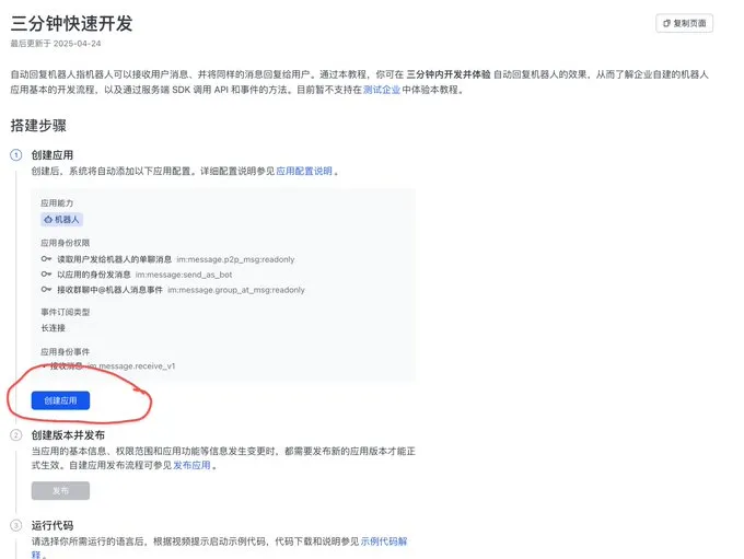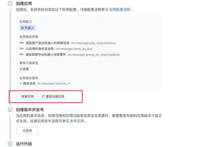 点击创建应用,按照引导创建机器人