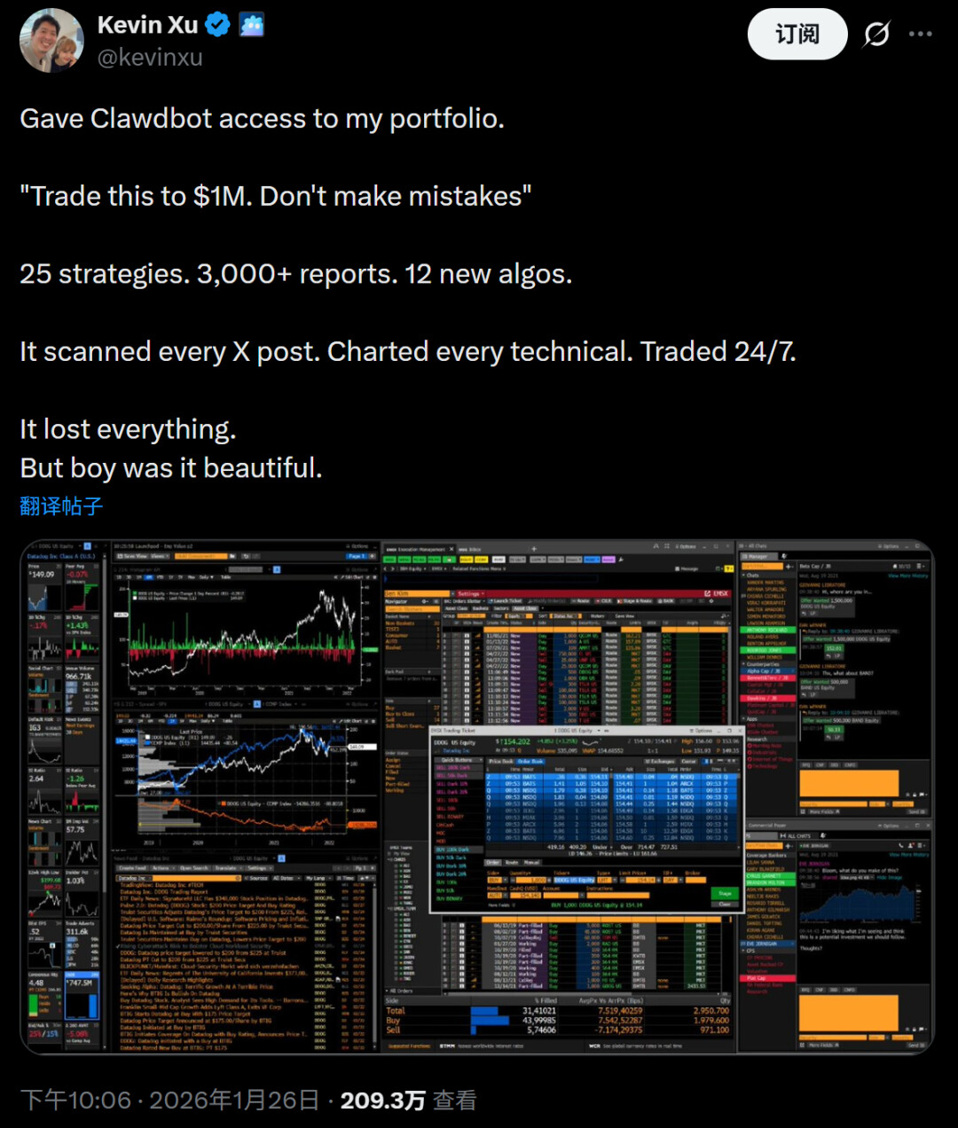 Clawdbot 出现之后,让 AI 帮你干活,自己只管收钱的梦想似乎不再遥远。有人已在这样尝试:Alpha.AI 的 CEO Kevin Xu 直接让 Clawdbot 接管了自己的理财小金库。