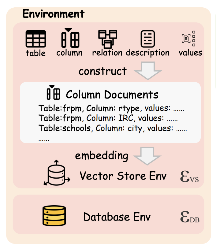 数据库环境( )为智能体提供直接访问数据库的能力,支持执行 SQL 查询以探索表结构、列信息、键关系及数据样本。