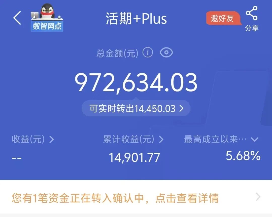“活期Plus+”作为微众银行的王牌产品,开通有门槛,需要存入5万元。不过帅帅作为老用户,有专属的“直升码”,即便1分钱不存,也可秒开。名额有限,有需要的小伙伴可扫上方群码加群索取。