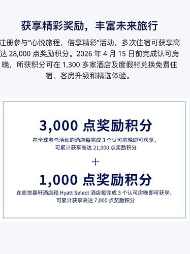 ②入住嘉轩和Select每3晚额外奖励1000分,上限7000分