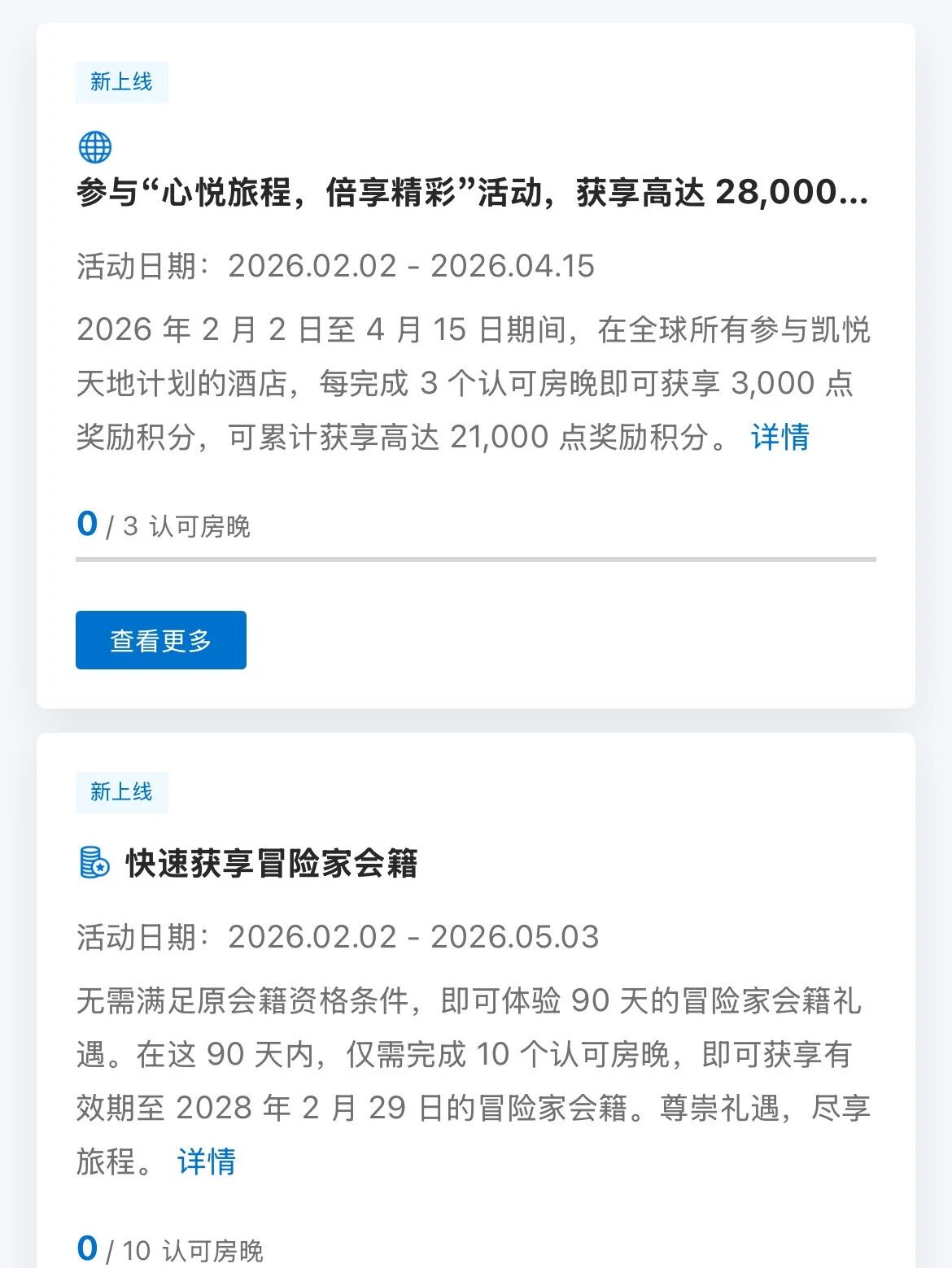 凯悦Q1活动来袭!每3晚最高奖励3000分,助力环球客冲刺/保级。