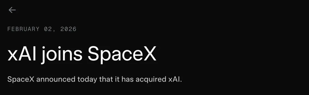 参考链接:https://www.bloomberg.com/news/articles/2026-02-02/elon-musk-s-spacex-said-to-combine-with-xai-ahead-of-mega-ipo?srnd=phx-technology