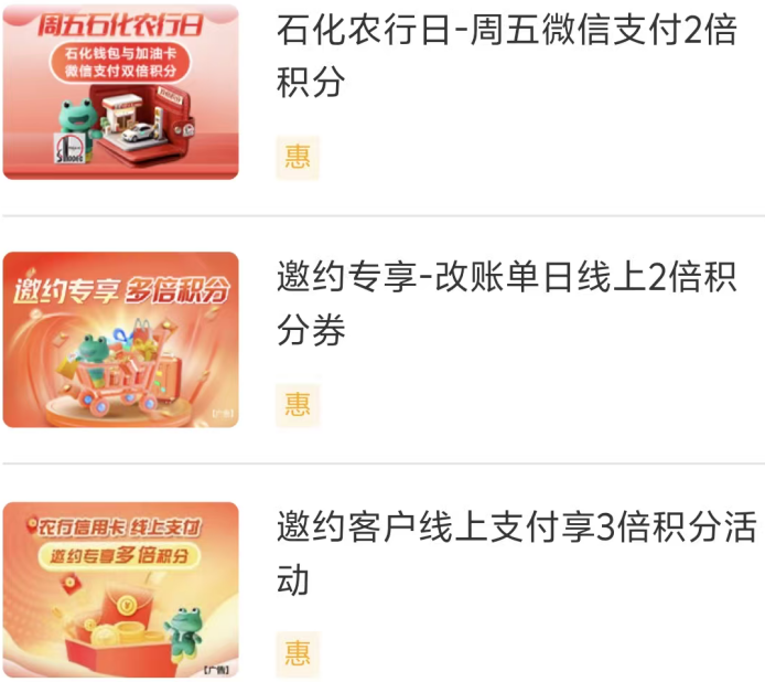 别急,如果真是1:1硬刷,那性价比确实一般。但玩农行信用卡的“积分奥秘”就在于——多倍积分活动!