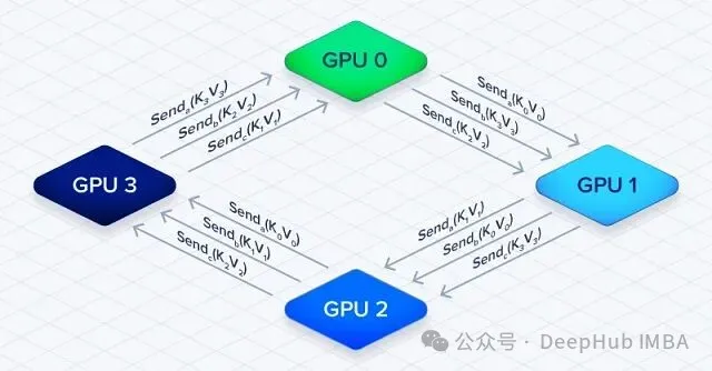 关键在于计算和通信是重叠的。GPU 1 拿着当前的 K/V 分块算注意力的时候,同时在从 GPU 0 接收下一批分块。通信延迟减少了,因为不用干等数据全到了再开算。