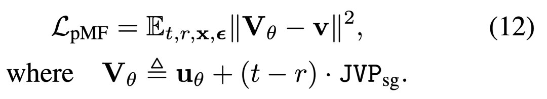 接着将公式 (11) 中的 u_θ 纳入 iMF 表述中,即结合 v-loss 使用原论文公式 (7)。具体的优化目标如下: