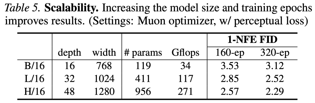 关于可扩展性,团队在表 5 中报告了增加模型大小和训练 Epoch 的结果。正如预期的那样,pMF 从这两个维度的扩展中均有获益。