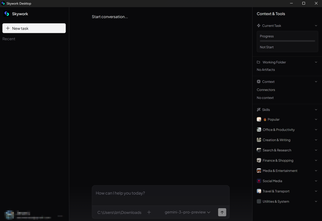 天工 Skywork 桌面版旗帜鲜明地将 Windows 平台作为首发阵地,为全球用户提供开箱即用的「Cowork 平替」。