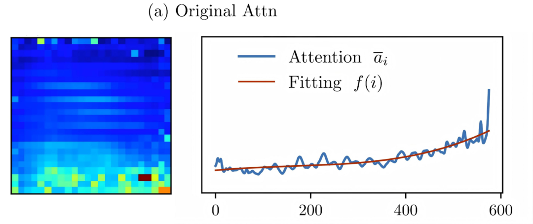 该团队观察到,attention 中的偏置并非随机噪声,而是呈现出稳定的整体趋势。因此,他们通过对 attention 随 token 位置变化的趋势进行拟合,构建了一条反映 “位置偏置” 的曲线,并在此基础上对原始 attention 进行去偏修正,显式削弱与内容无关的位置因素,使 attention 更接近真实的语义重要性。如下图所示。