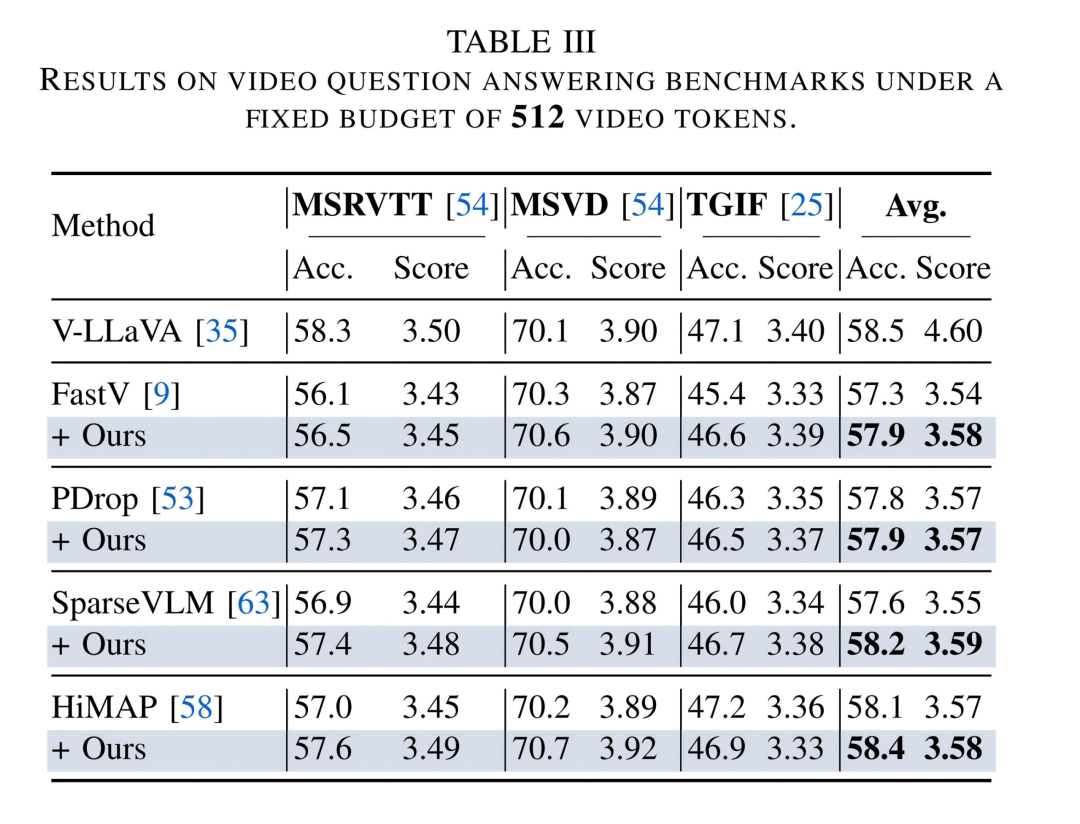 在实验验证中,该团队将 Attention Debiasing 方法集成到 FastV、PyramidDrop、SparseVLM、HiMAP、TokenCarve、iLLaVA 等 6 种主流 attention-based 剪枝方法中,在 10 个图像理解基准与 3 个视频理解基准 上进行了系统评估,并覆盖 LLaVA-7B / 13B 等多种主流 Vision-Language Models。