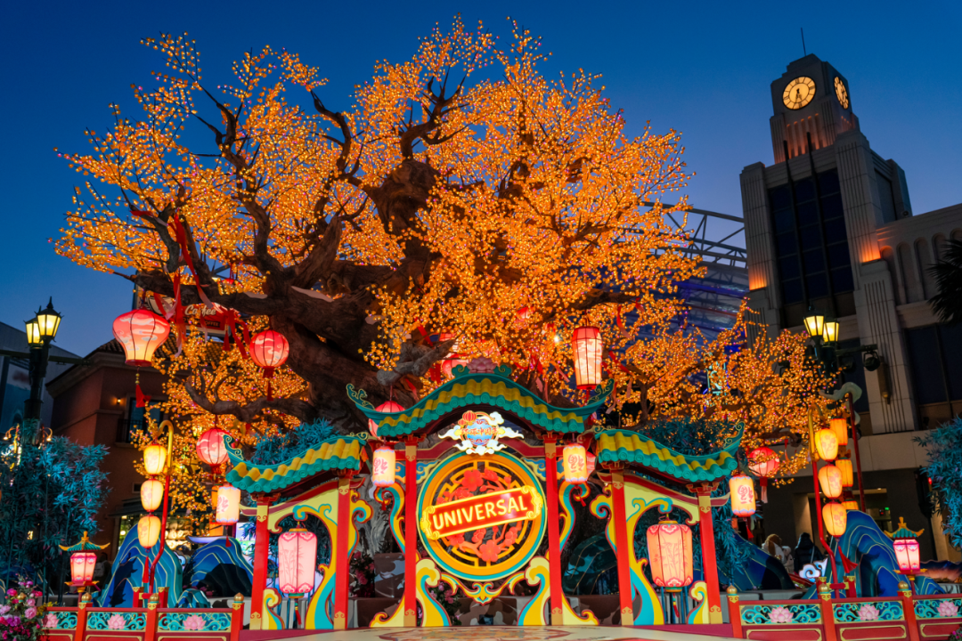 最吸睛的是入园口的“环球绮愿金梅树”,搭配光影音乐秀,祈福许愿满满仪式感,随手一拍就是新年大片。