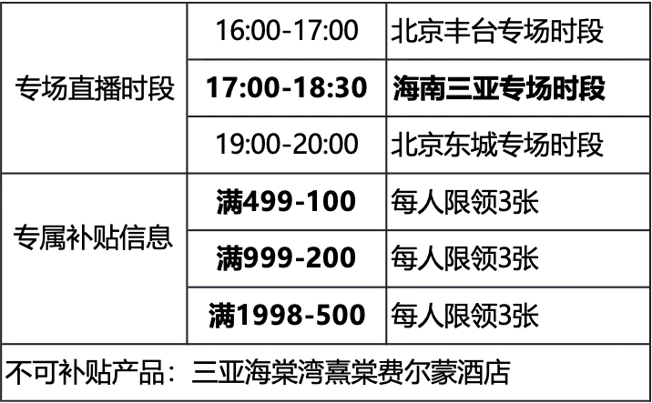 美团旅行直播间推出三亚酒店500元大额补贴,多家知名酒店抄底价促销,更有北京酒店同步优惠,速来抢购!