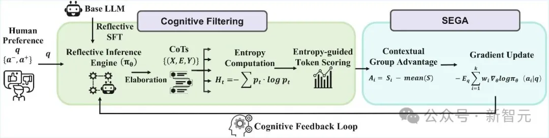 首先,为了在少量的偏好对中挖掘出尽可能多维度细粒度的「认知信号」,研究人员提出了「熵引导的认知过滤机制(Cognitive Filtering)。