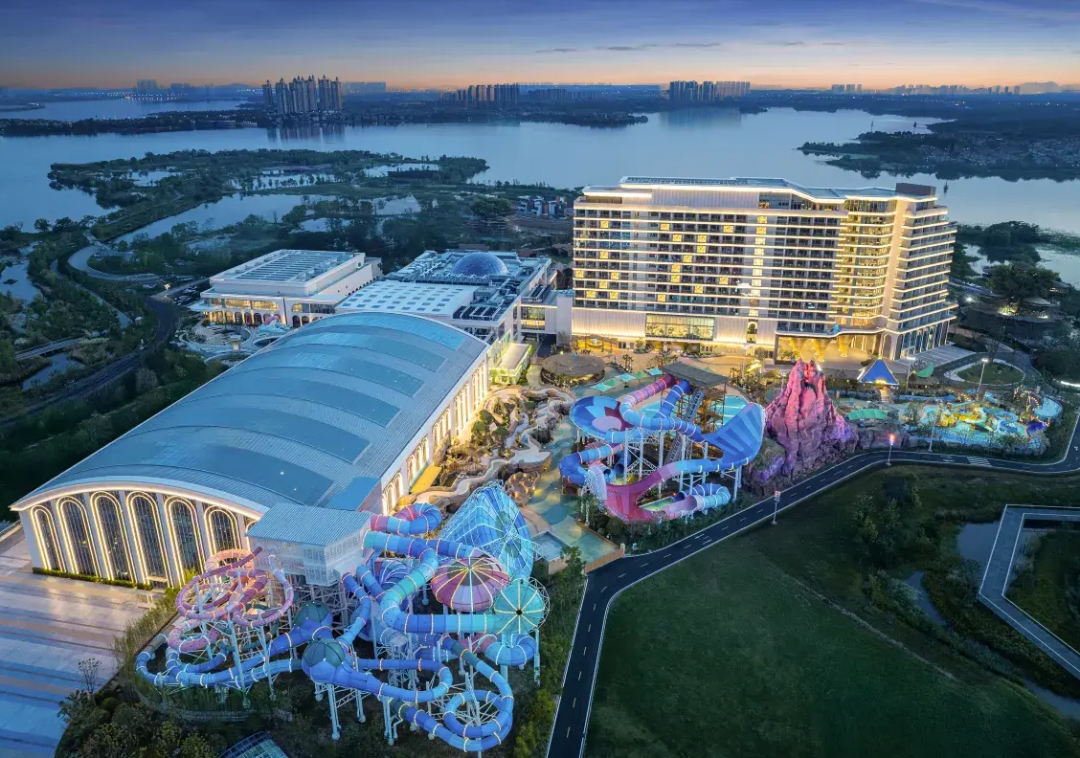 酒店位于武汉蔡甸后官湖畔,拥有585间客房,2.8万㎡恒温水上乐园+1.2万㎡儿童乐园,四季畅玩,是家庭出游放松的优选。