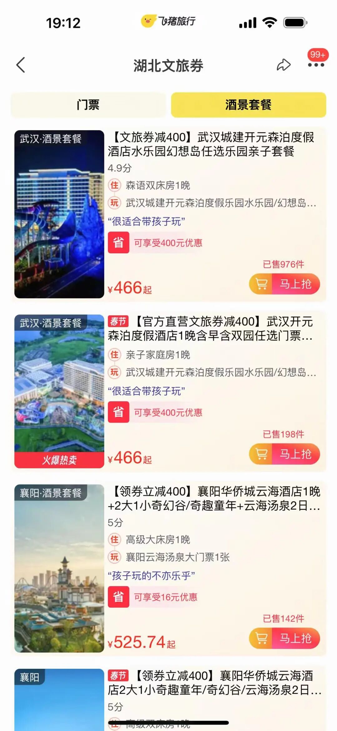 湖北文旅消费券来啦!酒店门票立减400,开元森泊亲子套餐券后466元起,速领!