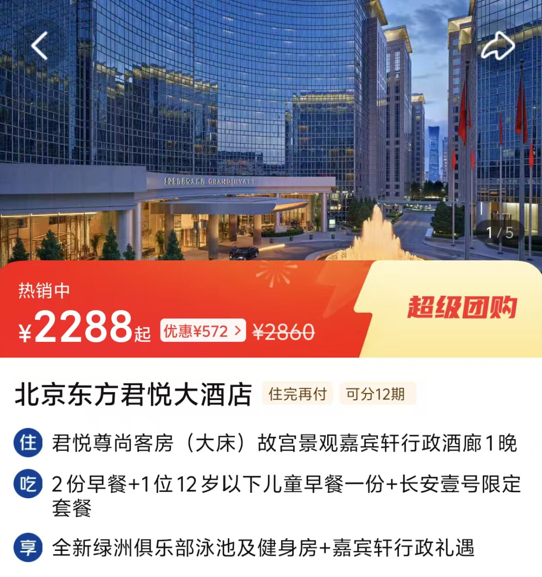 酒店位于东城区核心地段,临近三里屯、簋街,地铁直达各大景点。豪华大床房空间宽敞,装修温馨舒适,配套设施齐全,能满足全家出行的居住需求。3晚仅需2200元,折算下来每晚不到750元,就能入住市中心高端酒店。春节期间带家人游北京,住在这里既能感受京城繁华,又能方便前往各大景点,性价比无敌了。