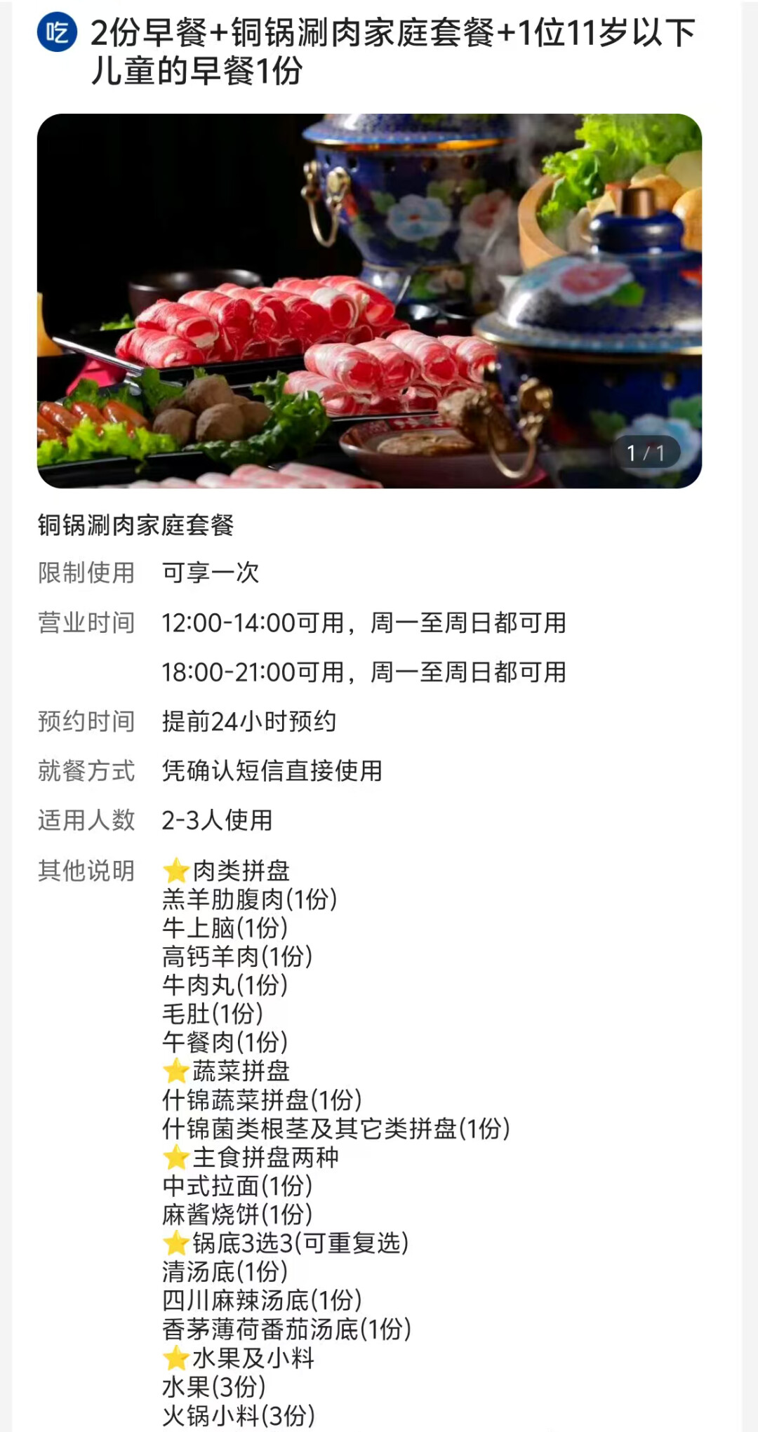 亮点:百年国宾酒店+长安街景客房+铜锅涮肉套餐。