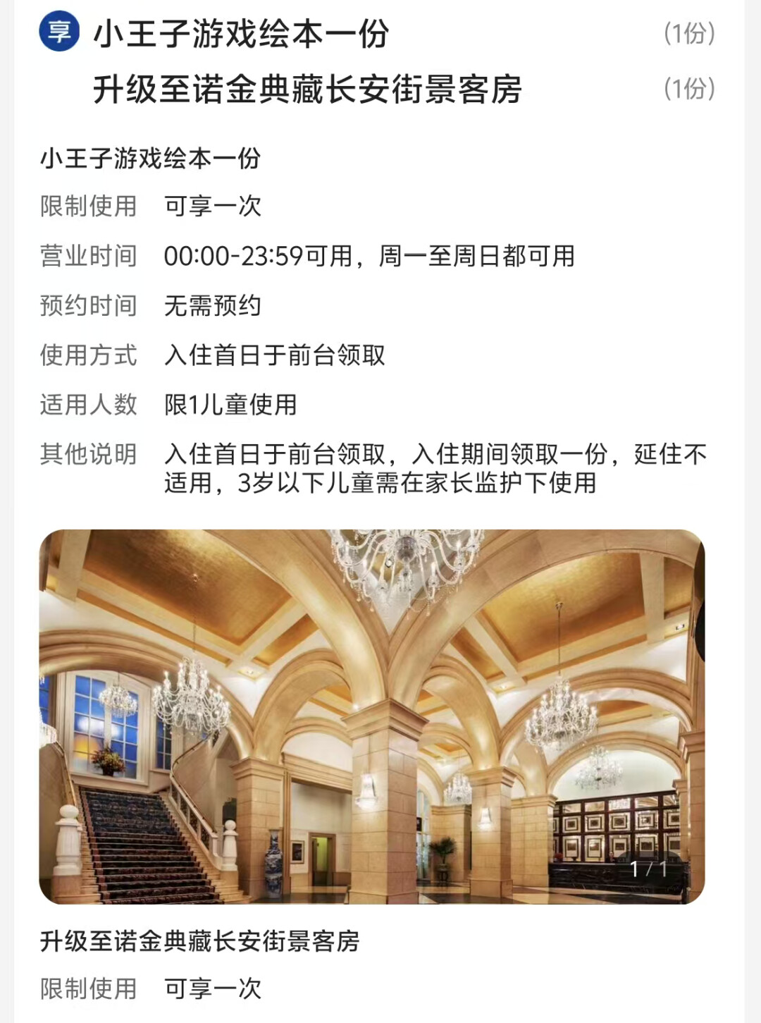 还赠送小王子游戏绘本一份。除春节假期外全日期不加价,1788元住两晚百年酒店,性价比很高!