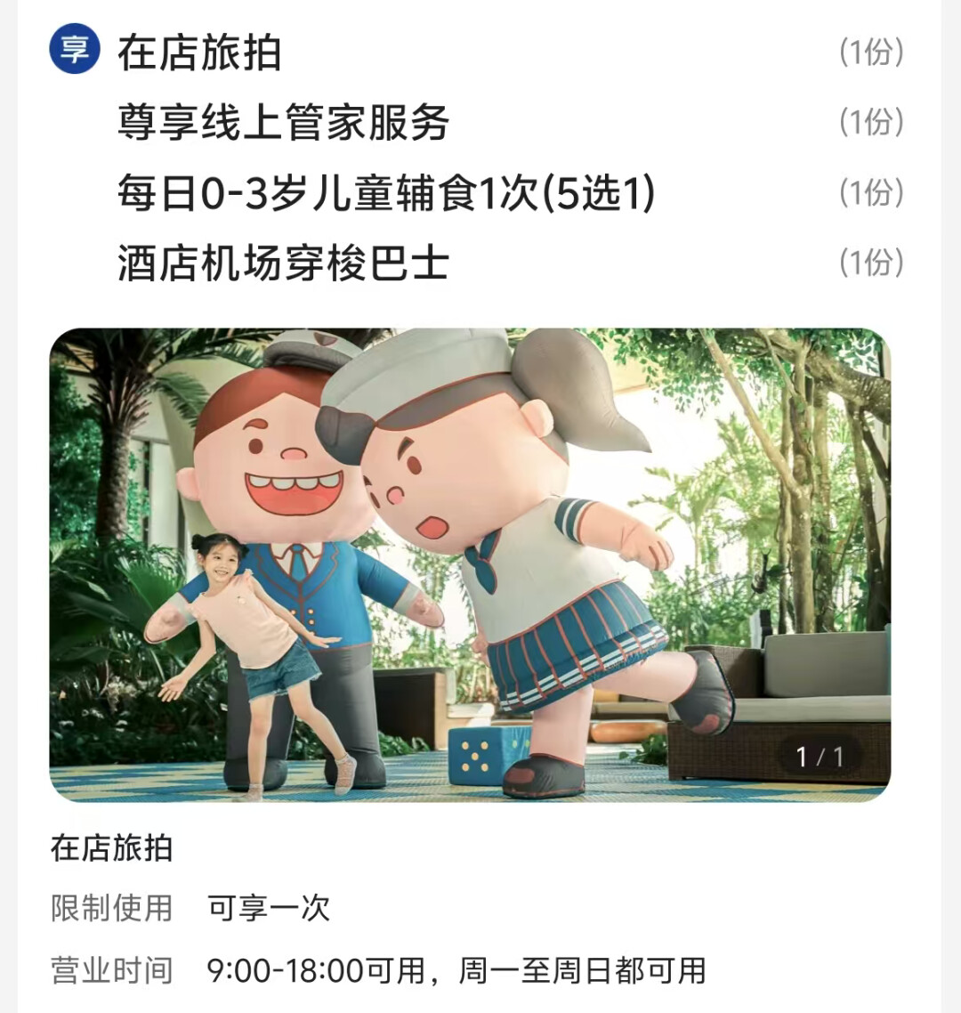 针对低龄宝宝,每日提供5选1的儿童辅食。线上管家24小时响应需求,在店旅拍定格亲子瞬间,机场穿梭巴士解决交通烦恼。