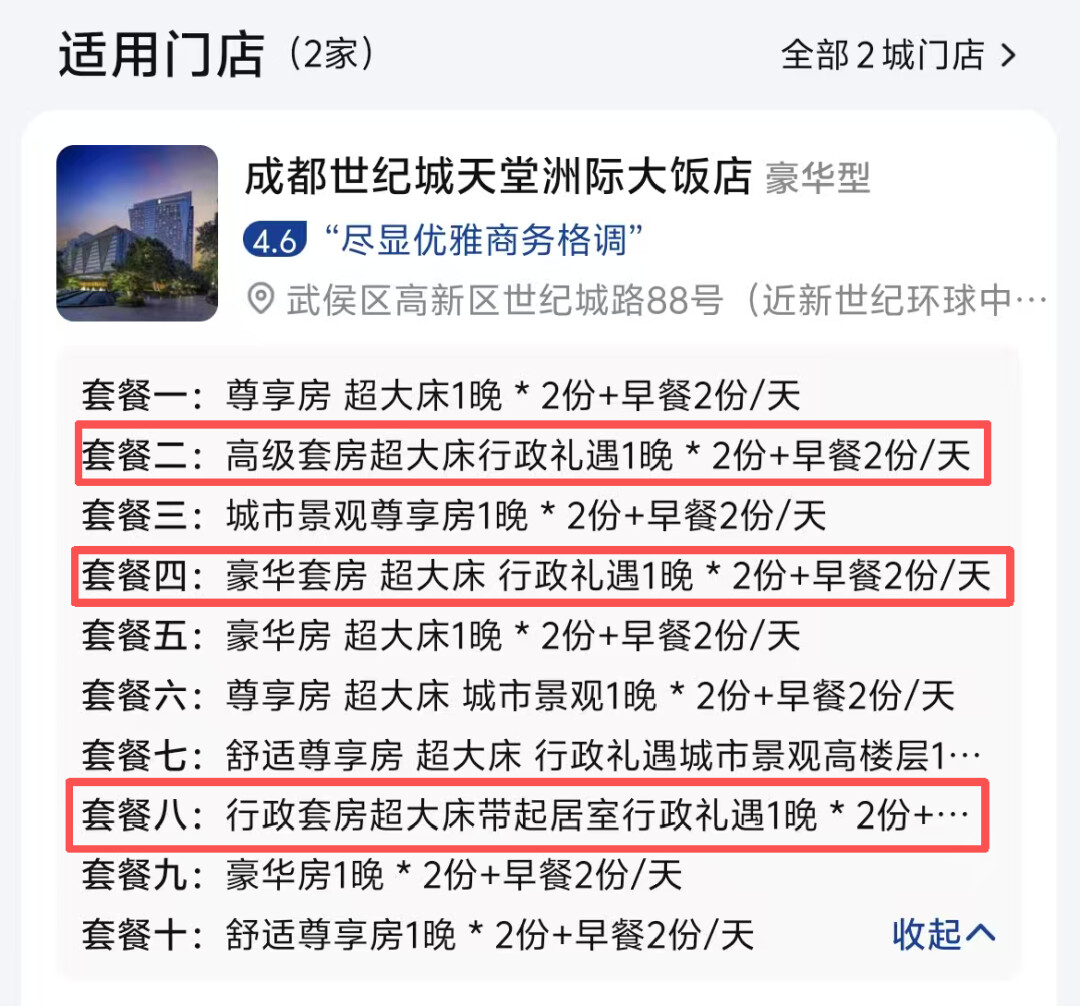 一次囤货,承包成都与九寨沟两大热门目的地!成都世纪城天堂洲际主打行政套房/豪华套房,地处核心商圈,出行便利;