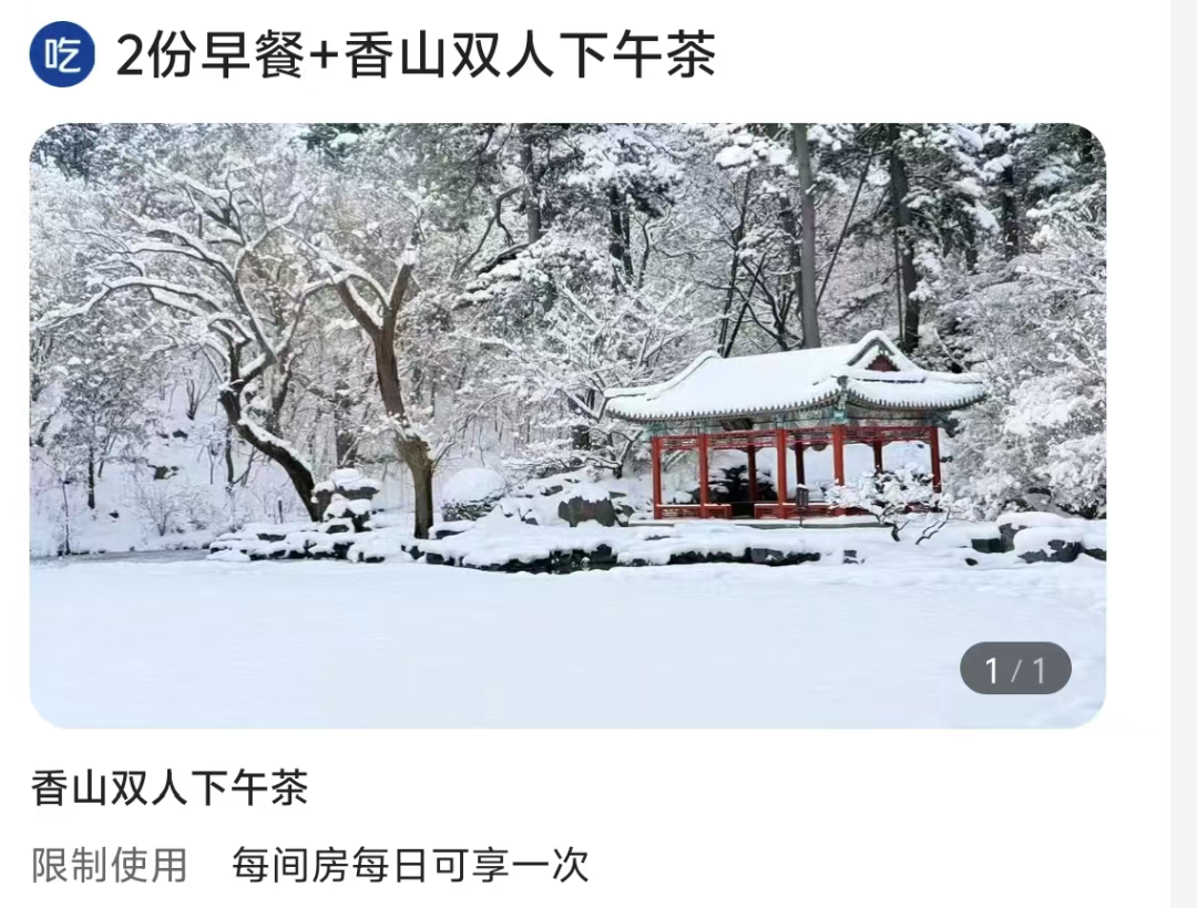 核心亮点:春节不加价+套房升级+双人香山门票+专属下午茶。