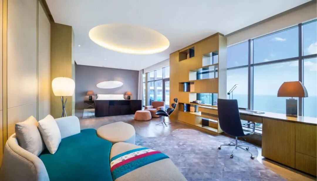 总统套房对于很多小伙伴来说可望而不可及,现在机会来了,这款套餐直接安排!艾美酒店的总统套房空间奢华开阔,配套设施顶级,景观视野绝佳,能俯瞰青岛西海岸的美景。
