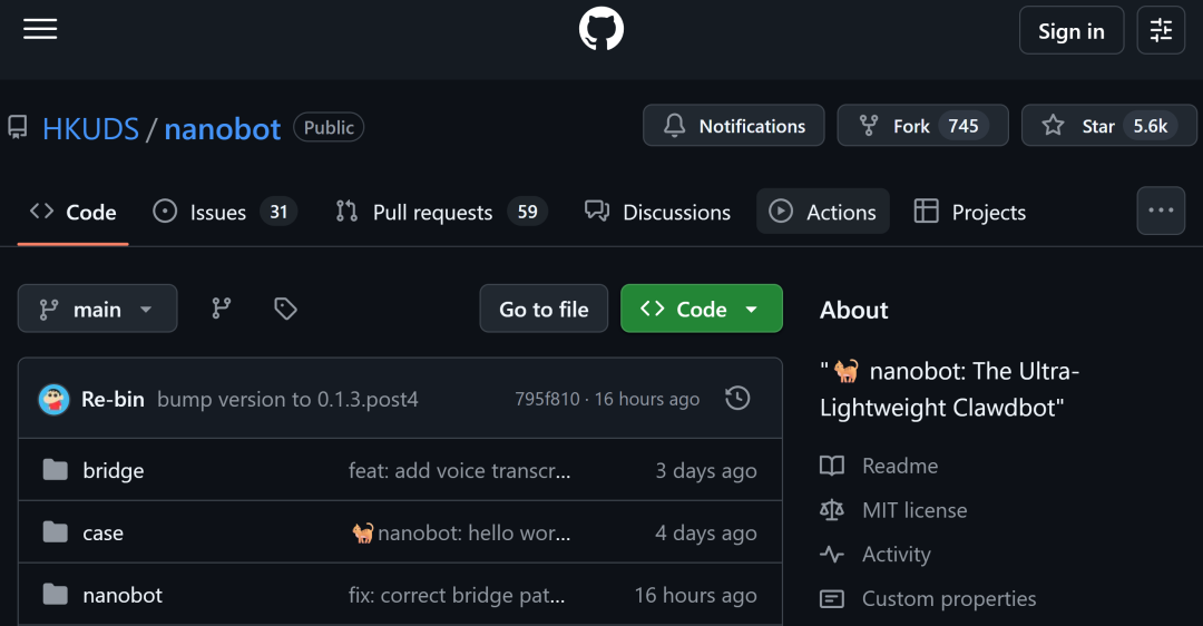 项目链接:https://github.com/HKUDS/nanobot