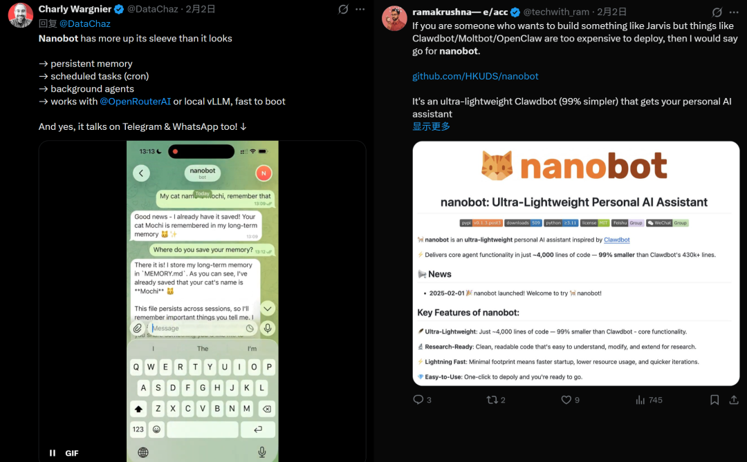 港大开源OpenClaw精简版nanobot,1%代码量实现核心功能,2分钟部署,快速拥有你的专属AI助理!