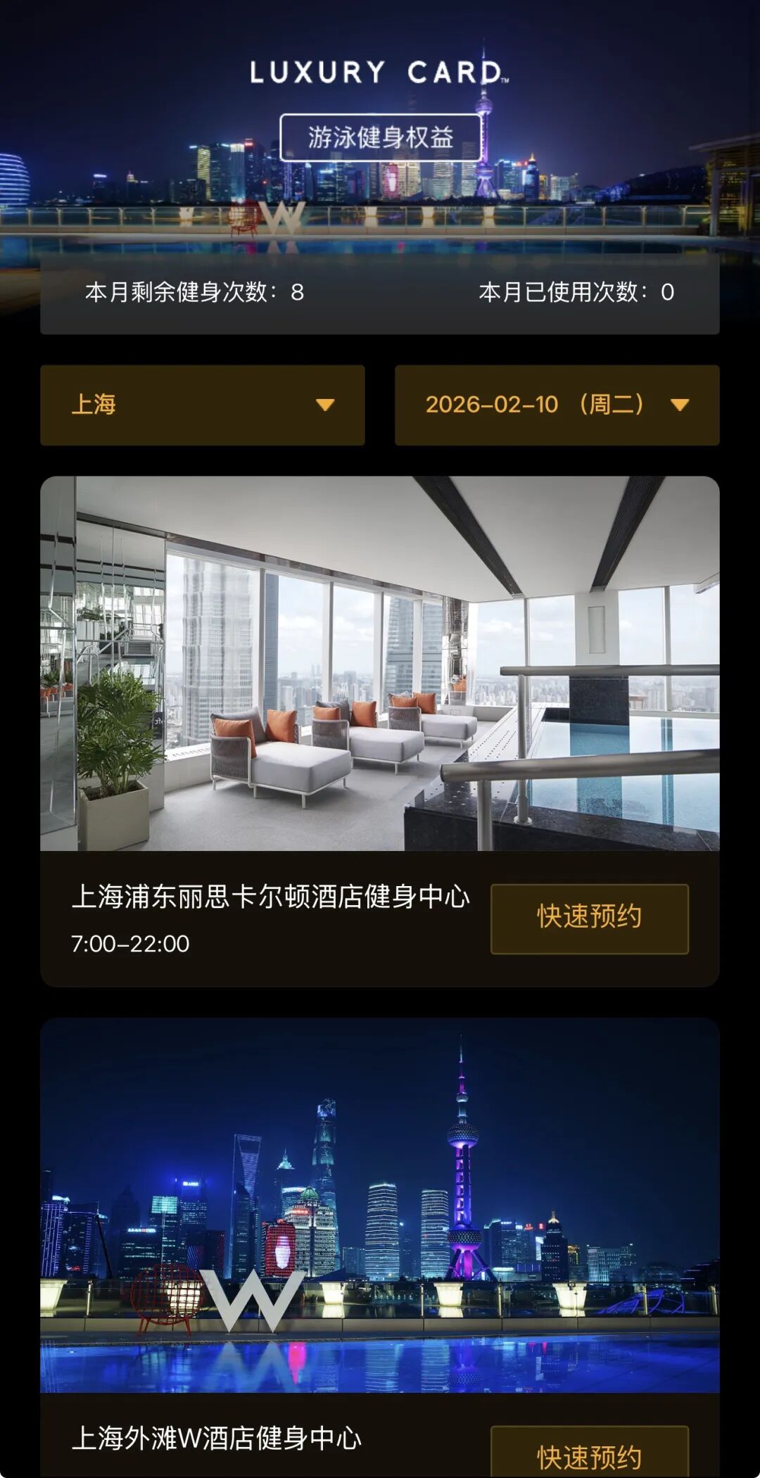 而黑金会籍可以每个月免费8次泳健,平均每周2次,这个频次刚好。所以把黑金会籍当成奢华酒店泳健年卡来用也完全没问题。而黑金会籍的年费,是要远远低于奢华酒店泳健年卡的。