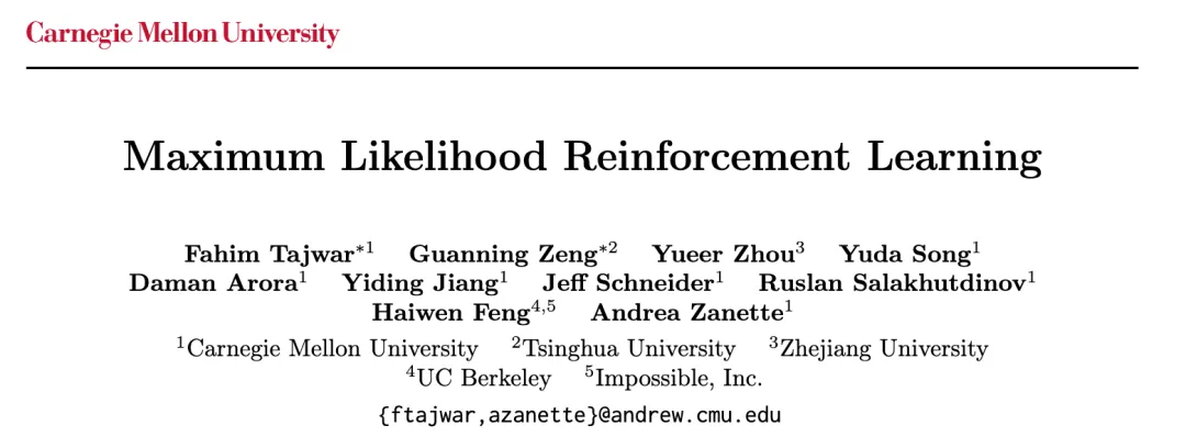 论文标题:Maximum Likelihood Reinforcement Learning