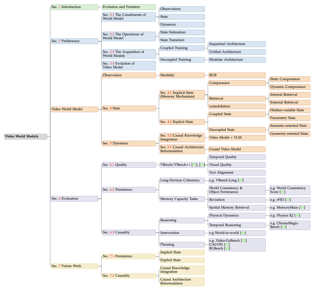 本文旨在弥合当代「无状态」视频架构与经典「以状态为中心」的世界模型理论之间的鸿沟,首次提出以「状态构建(State Construction)」与「动态建模(Dynamics Modeling)」为双支柱的全新分类体系。