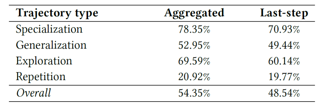 逐步步骤轨迹层面:Trajectory Move,即相邻两条查询之间的改写动作类型。