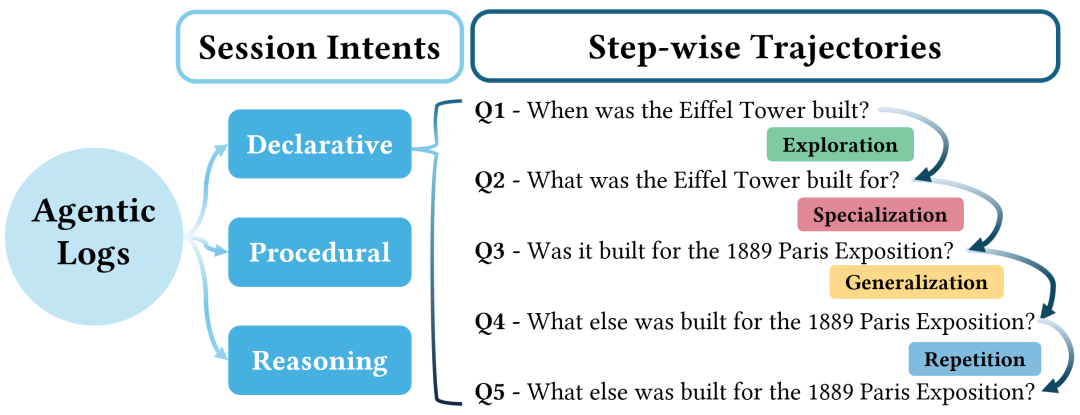会话层面:Session Intent,即智能体在此次搜索中试图完成的任务类型;