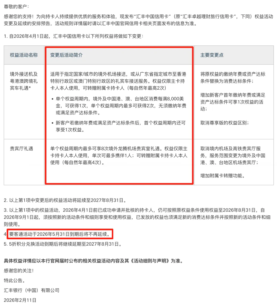 我个人理解是应该针对大部分卡种,特别是高端卡,毕竟权益缩水主要集中在高端权益上。建议你仔细阅读公告原文,或者直接致电汇丰客服确认你的卡种是否受到影响。如果没影响,那就偷着乐吧,但也别掉以轻心,说不定以后还有变动。